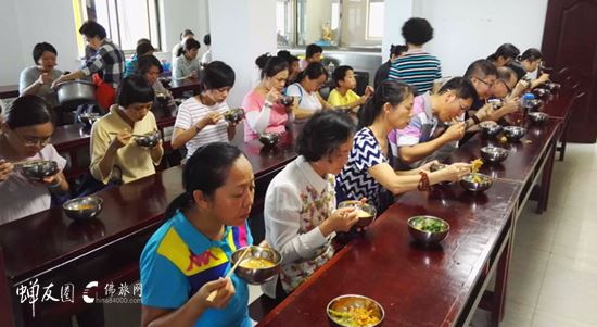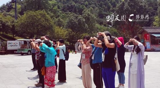 虽然当日气温39度,团员们仍然发心三步一拜顶礼地藏王菩萨,在菩萨的慈悲注视下共修诵经,感受圣境殊胜的加持力!在朝圣圆满后,清净的酒店与可口的徽派素食为归来的团员们,亦送上了一份最温馨的关怀与照顾。