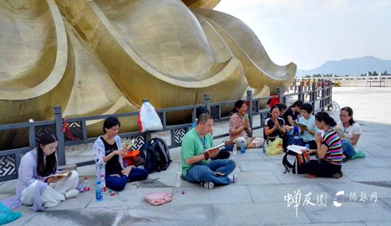 7月29日,团员们在领队的带领下参访大愿文化园,三步一拜顶礼南无大愿地藏王菩萨。大愿文化园内的99米地藏王菩萨圣像,它宝相庄严、高大,气势非凡,面朝西方极乐世界,意味度尽众生,向往美好之意。